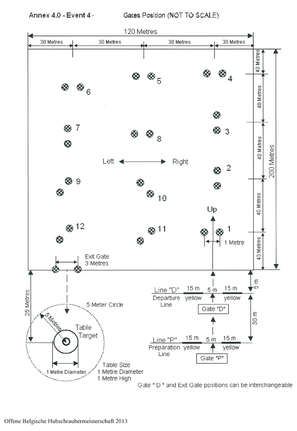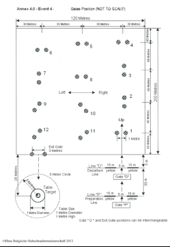 Eimer ist in einer vor dem Wettbewerb genau festgelegten Reihenfolge und Durchflugsrichtung durch die zwölf Tore des