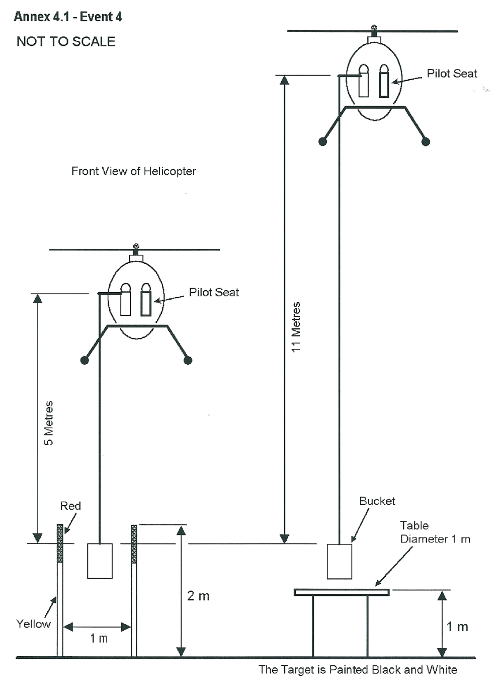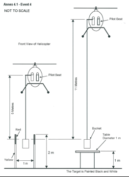 Tisch abzusetzen. Der Copilot führt an einem fünf Meter langen Seil einen 8 kg schweren, mit Wasser gefüllten Eimer. Der